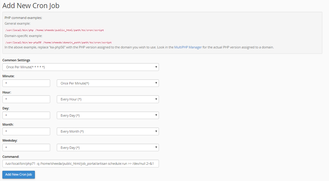 /usr/local/bin/php -q /home/Home-Directory/public_html/artisan schedule:run >> /dev/null 2>&1